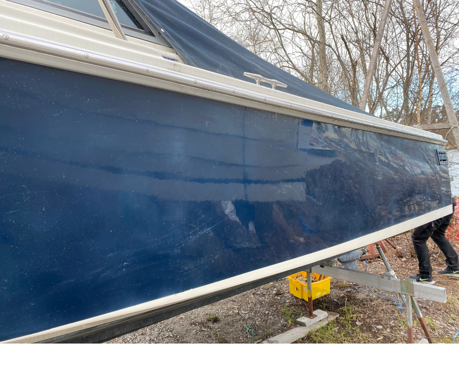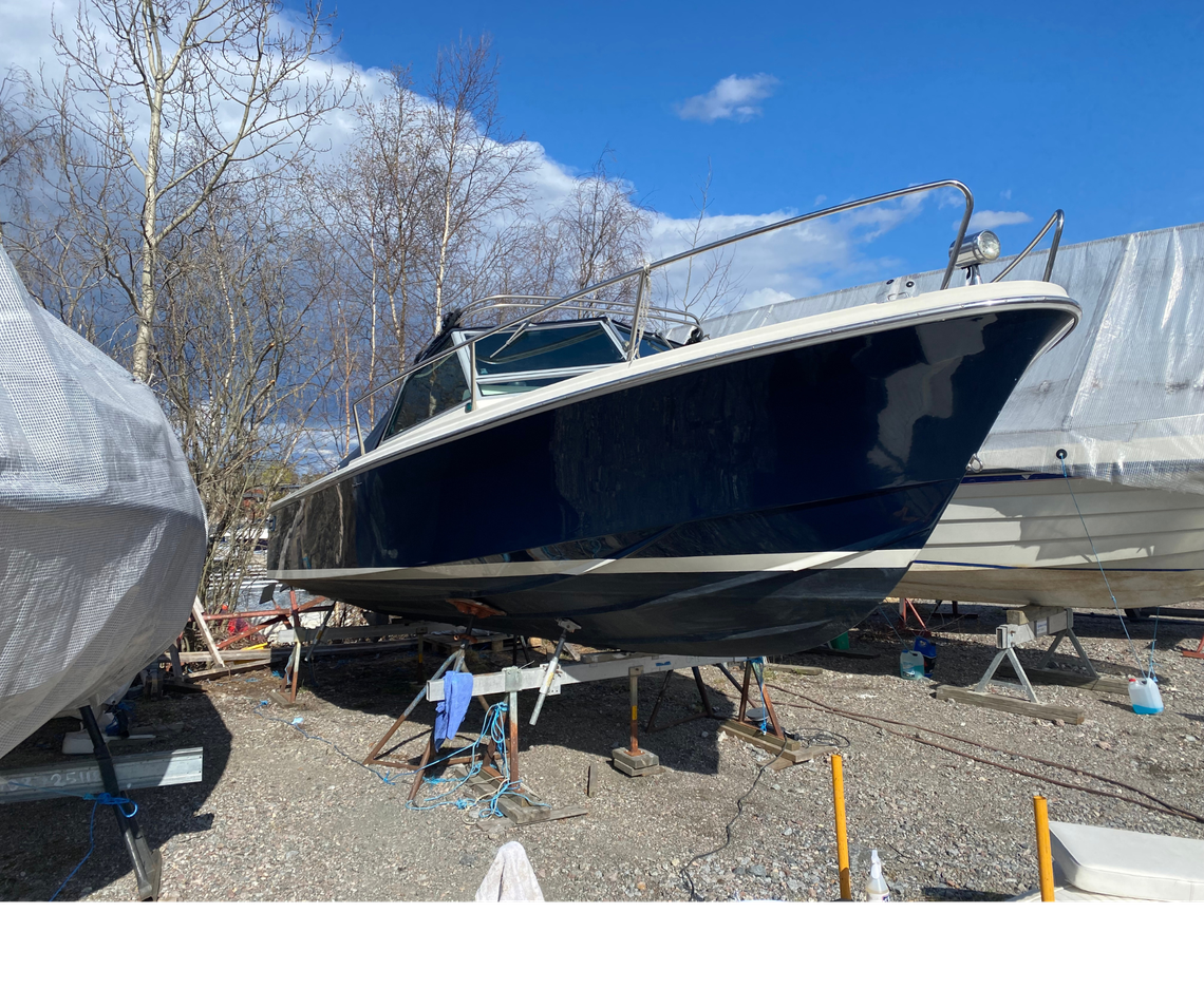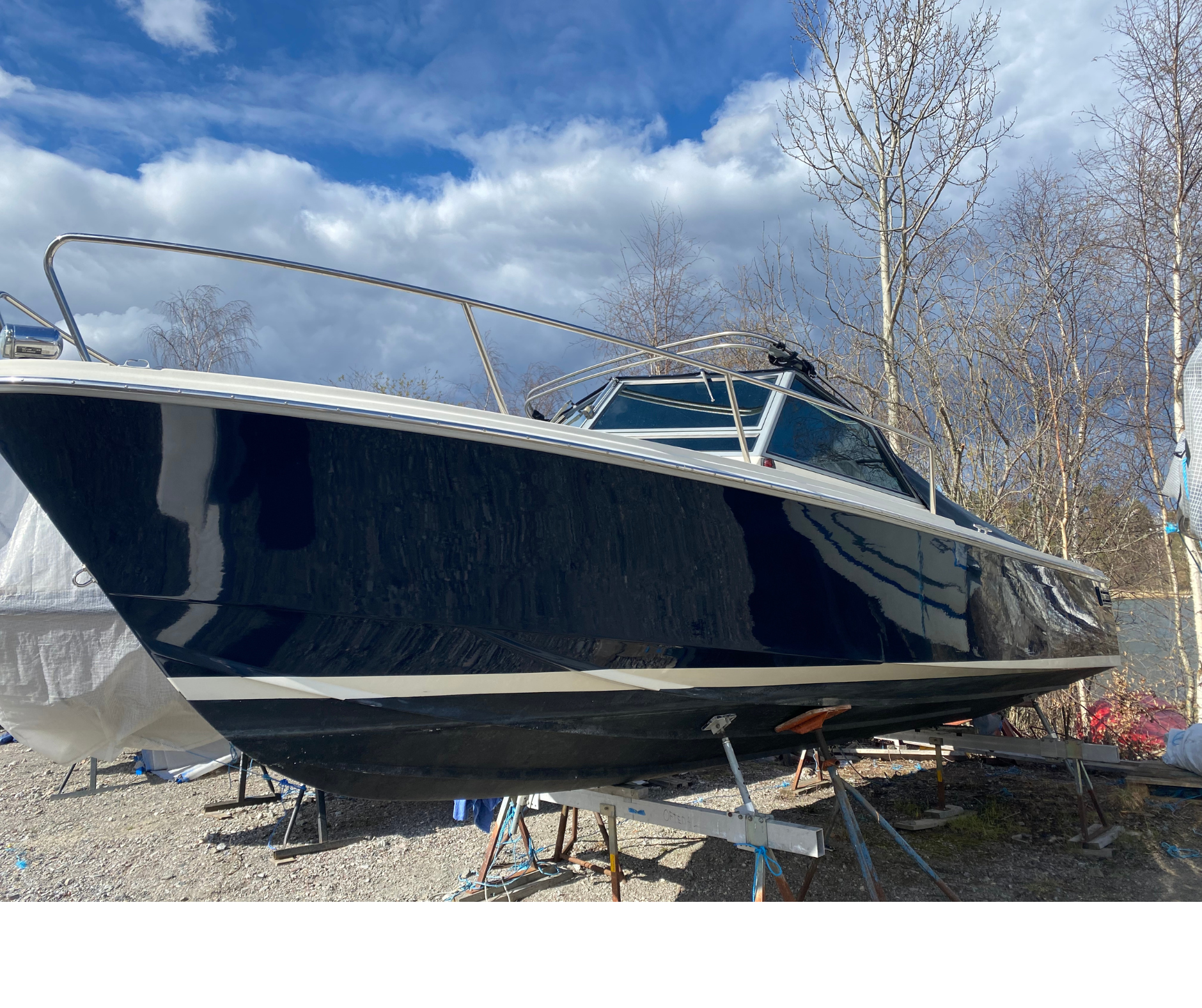 Vi jobbade på en båt som inte hade fått någon omsorg på flera år. Båten var full av oxidation och missfärgningar. Tillsammans med min partner Per, påbörjade vi arbetet med att tvätta hela båten och dess kapell med Multiclean. Per tog hand om servicen av motorn, medan jag arbetade med att avlägsna gelcoaten. Efter att ha testat flera produkter insåg vi att Menzera produkter passade bäst för detta mörka skrov. Dag två genomförde vi även en service på drevet och bytte bälgar, samtidigt som vi fortsatte med att polera hela båten till dess forna glans.