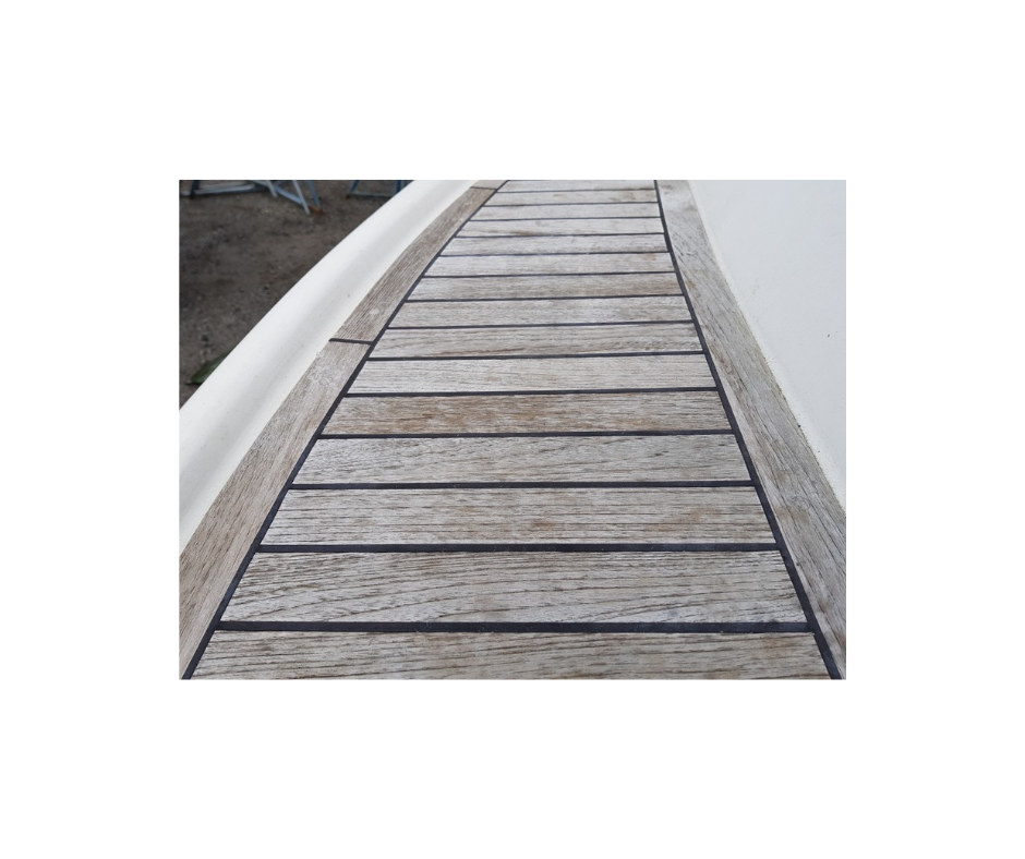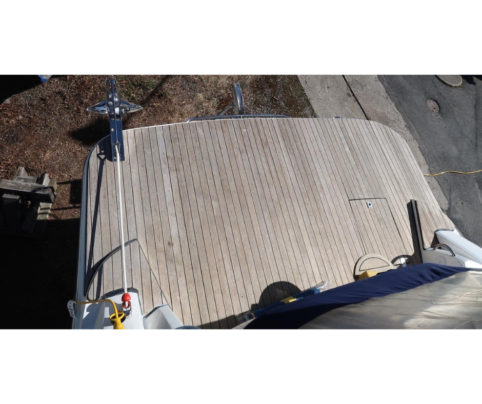 Vi arbetade med en Uttern-båt som hade blivit försummad under flera år. Först tvättade vi hela båten med vårt eget tvättmedel. Därefter utförde vi tester med olika rubbingmedel och använde Merzenas Cut Compound för att behandla hela friborden. Vi fortsatte sedan med att applicera Merzenas Onestep och avslutade med Premium Protection för att skydda ytan. Efter att allt hade vaxats fortsatte vi med teakdäcket. Vi började med att behandla det med Snappy Teak 1&2 och lät det torka en dag. Sedan masserade vi i Snappys Teakwax.